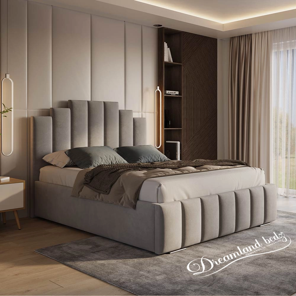 The 2026 Phoenix Art Deco Bed Frame offers a perfect fusion of timeless elegance and modern functionality. Upholstered in soft, luxurious cream plush fabric, this bed features a sleek, low footboard and a 48-inch high headboard, exuding a refined Art Deco aesthetic that complements both contemporary and classic bedroom designs.